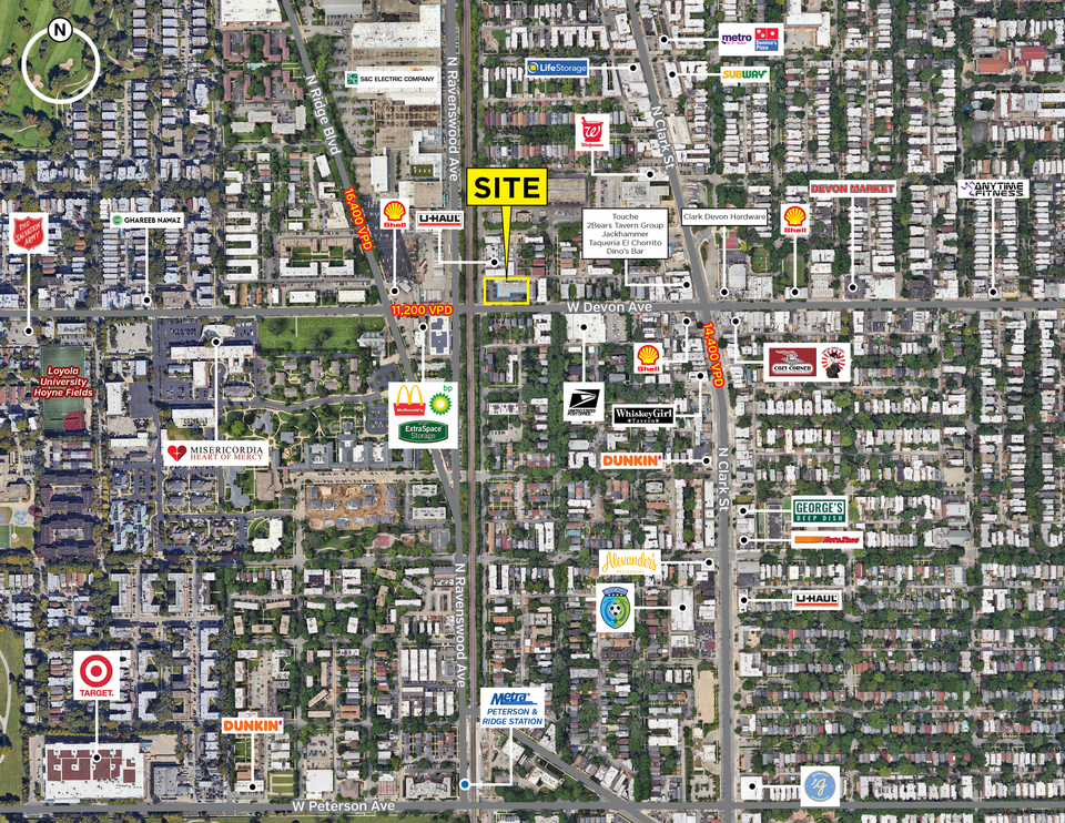 Discover the vibrant community surrounding this retail strip center on West Devon Avenue in Chicago. This bustling area offers an array of dining options, from casual eateries to upscale restaurants. Nearby attractions include the scenic Warren Park, Robert Black Golf Club, S&C Electric Company, and the "Little India" neighborhood of Chicago, which offers an exciting mix of uniquely cultural shops and restaurants. Additionally, the location is in close proximity to the new Metra station at Peterson and Ridge, the Loyola red line "el" stop, and multiple CTA bus lines.