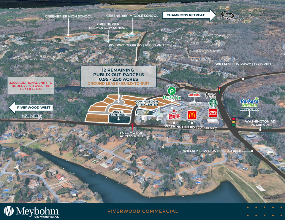Meybohm Commercial is pleased to exclusively present 13 remaining commercial pads within Riverwood Town Center, a Publix-anchored shopping center located in Evans, Georgia. Positioned in Columbia County’s highest-income trade area—with a median household income of $140,000—this development offers unmatched location, attractive demographics, and tenant synergy.