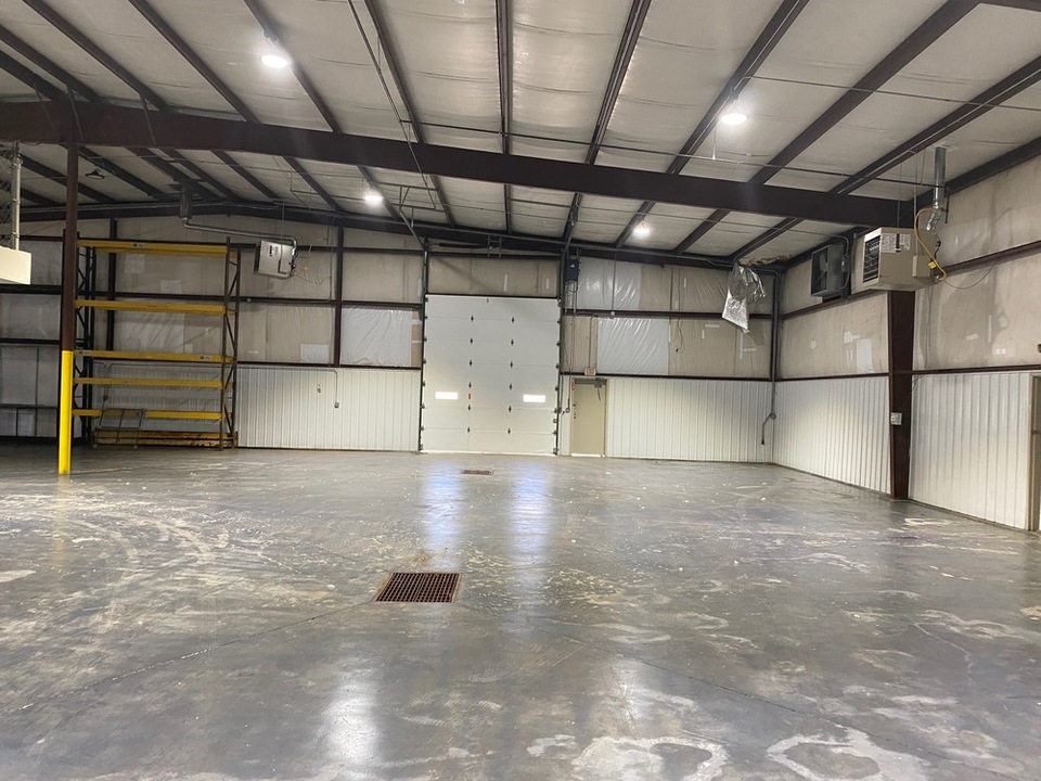 The ceiling heights are 21' at the peak and just under 16' at the eaves. There is a wet sprinkler system, and the property has 3-phase power. The warehouse space is split into two sections with a large connecting throughway. Each section has two hanging gas heaters.